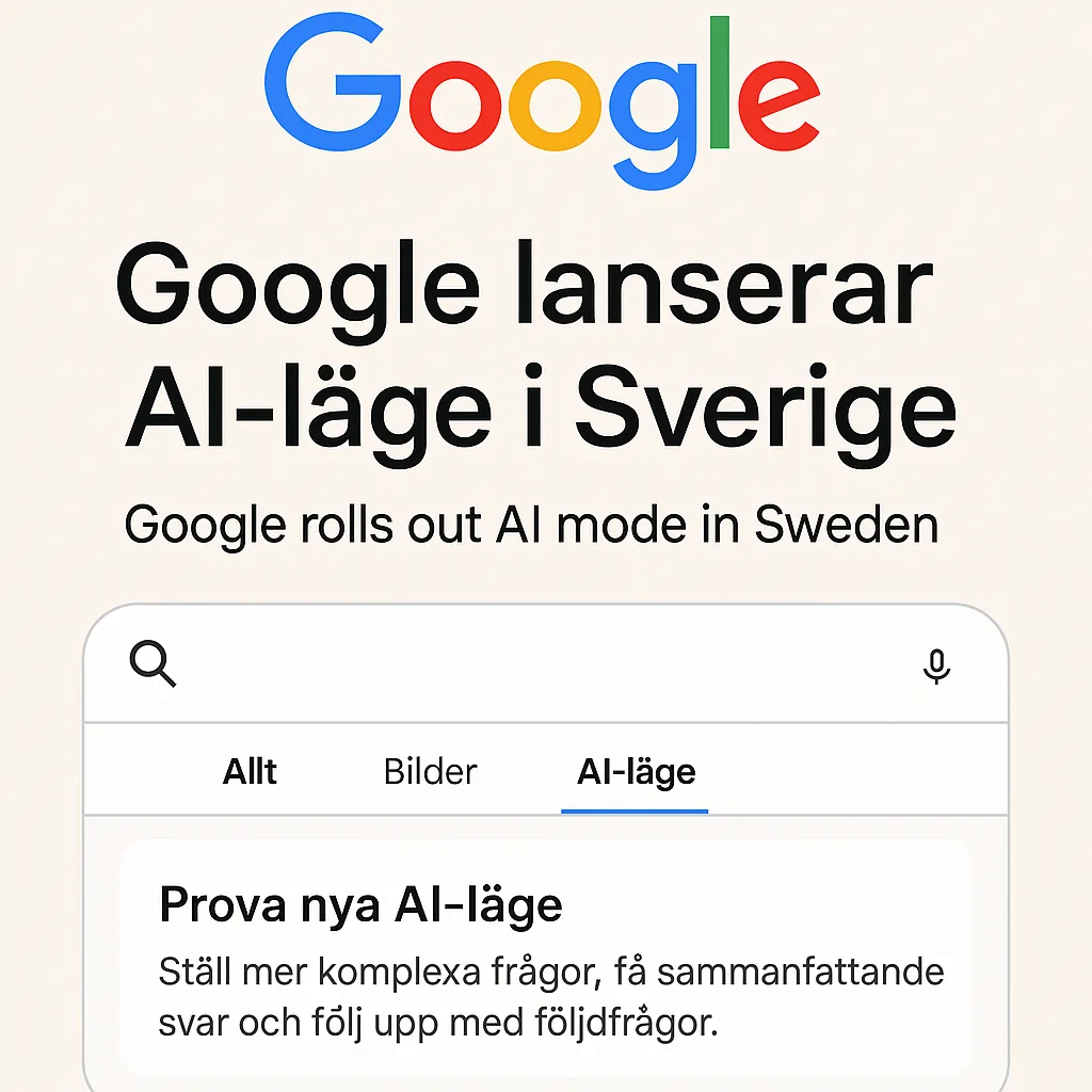 Igår rullade Google ut sitt nya “AI-läge” i Sök på svenska. Det här är den största förändringen i Googles sökmotor på över ett decennium – och kommer att påverka hur både företag och användare hittar information online.