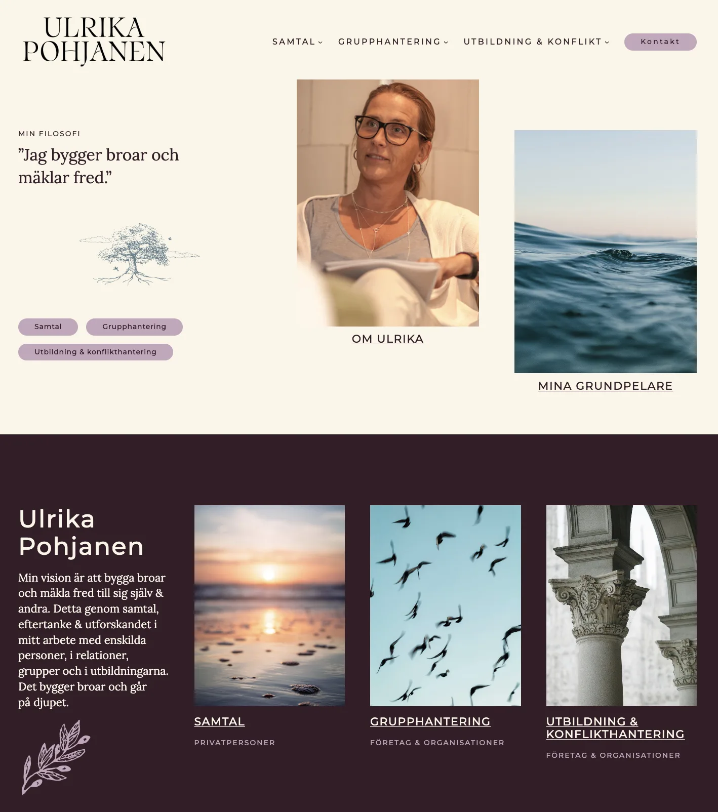 Ulrika Pohjanens filosofi är att bygga broar och mäkla fred – inom oss själva och mellan varandra. Genom samtal, eftertanke och gemensamt utforskande i möten med individer, relationer, grupper och i utbildningar skapas utrymme för fördjupning och nya perspektiv.